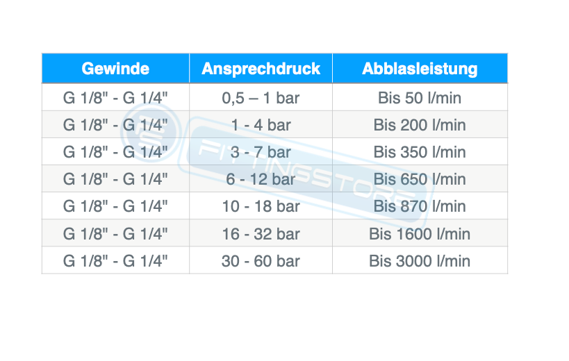 - Einstellbarer Ansprechdruck: 0,5 – 60 bar