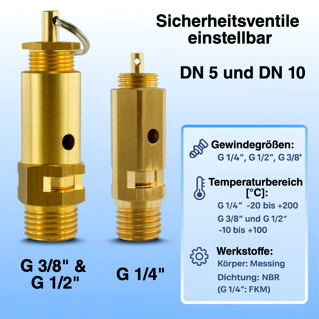 Sicherheitsventil einstellbar (1–16 bar) – für Druckluft & Gase, nicht bauteilgeprüft