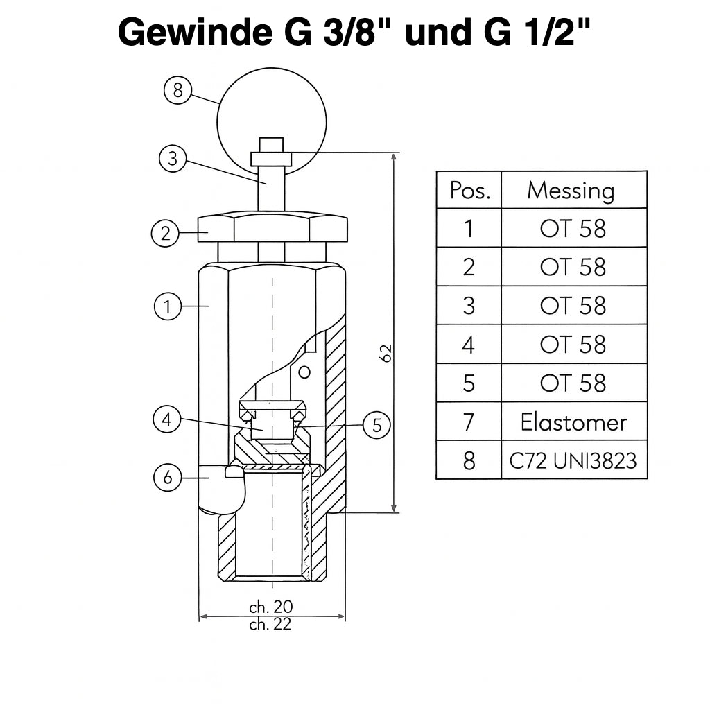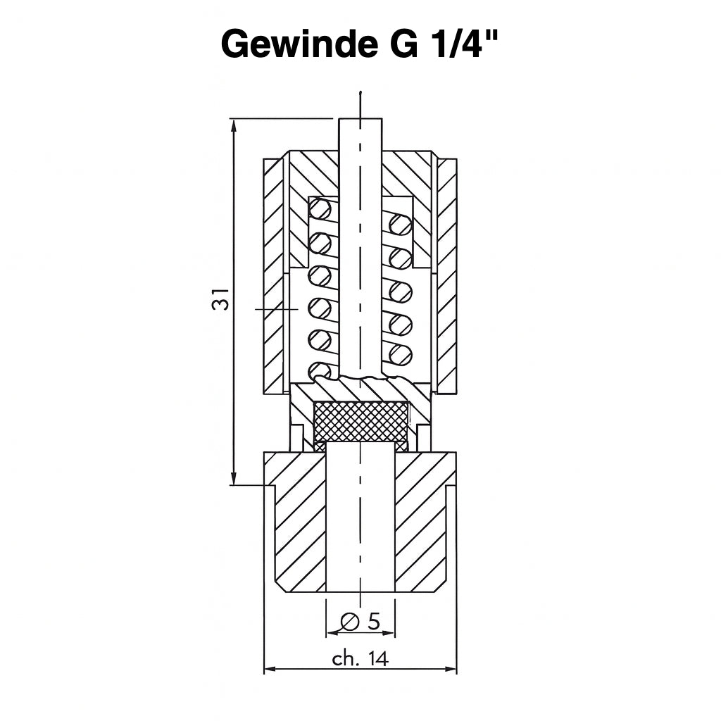 - Werkstoffe: Gehäuse aus Messing, Dichtung aus NBR (bei G 1/4" aus FKM)